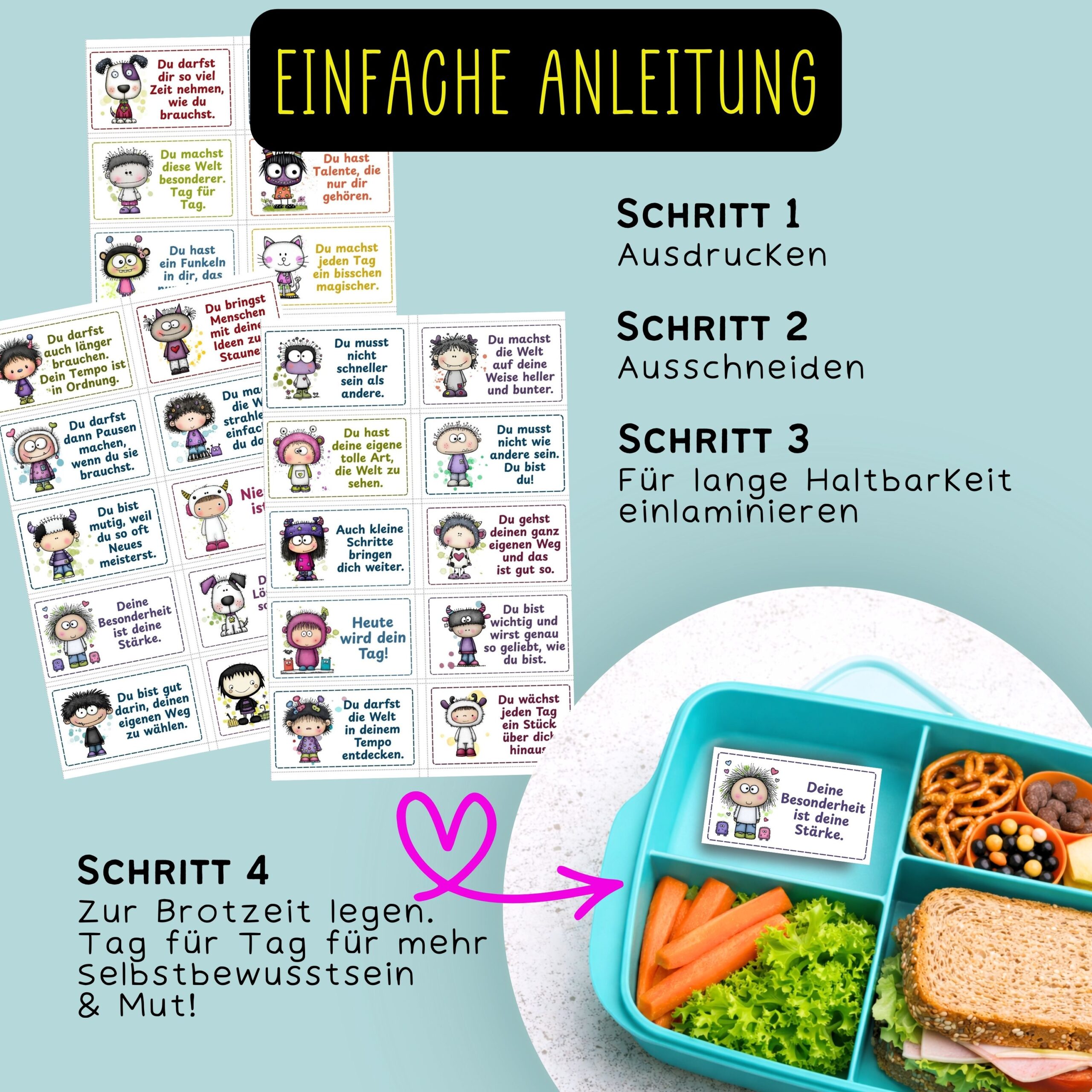 Diese Brotdosen-Nachrichten begleiten Kinder mit liebevollen, stärkenden Botschaften durch ihren Tag – leise, wertschätzend und ohne Leistungsdruck.